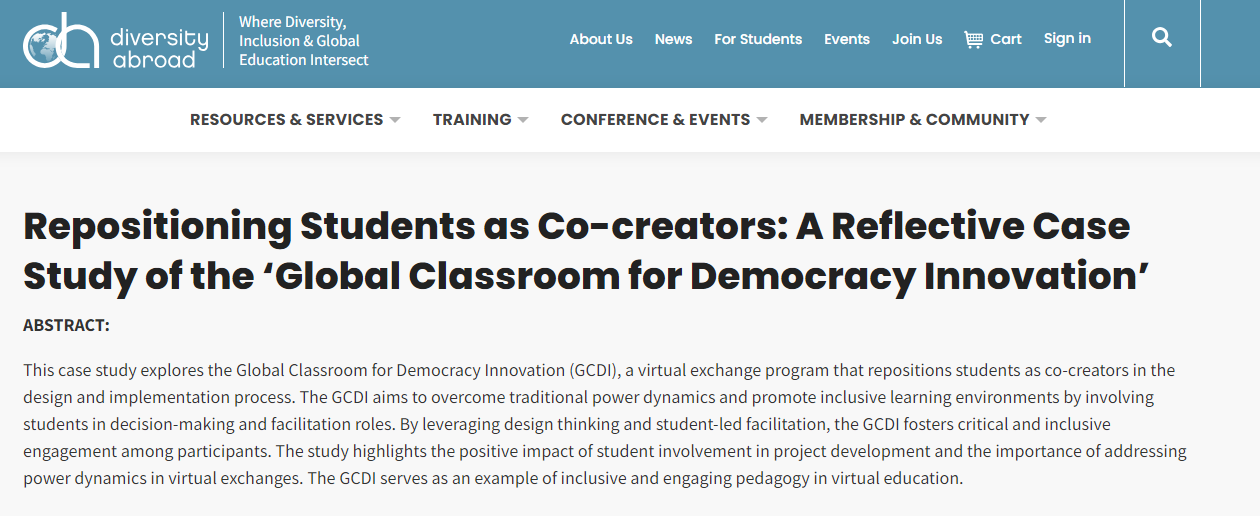 This case study explores the Global Classroom for Democracy Innovation (GCDI), a virtual exchange programme that repositions students as co-creators in the design and implementation process.